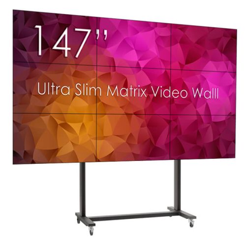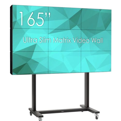 Solutie VideoWall 3×3 cu suport Vogel’s 3×3 cu baza mobila si 9 Display-uri SWEDX UMX-55K8, bezel 3,5mm
