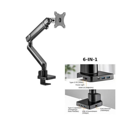 Suport monitor de masa cu Statie docking 6-in-1, Blackmount MNT20, 17″-32″, max.8 kg, otel, negru