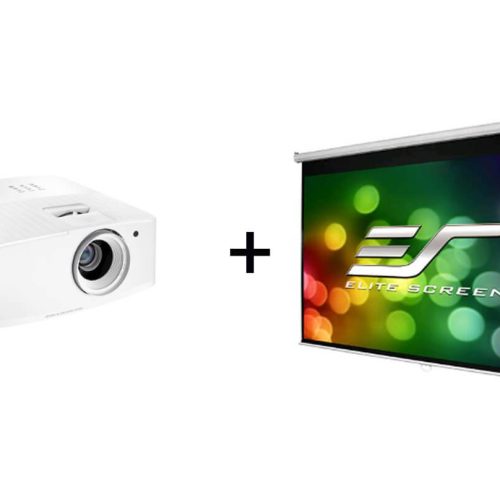 Pachet proiectie Home Cinema cu VideoproiectorOPTOMA UHD38x, 4K Ultra HD si Ecran manual ELITESCREENS M135XWH