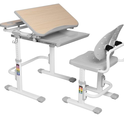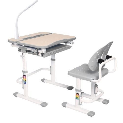 Set birou și scaun copii ergonomic reglabil în înălțime ErgoK REIA gri