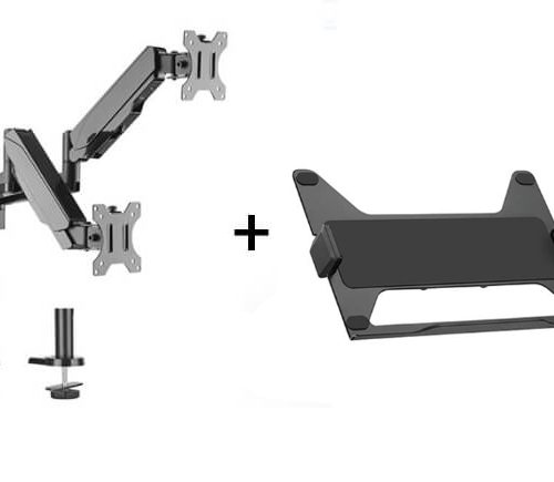 Suport monitor si laptop format din Suport 2 monitoare Gas Spring Dual Arm Blackmount MNT16-2 si Adaptor Laptop BM-NBH-6