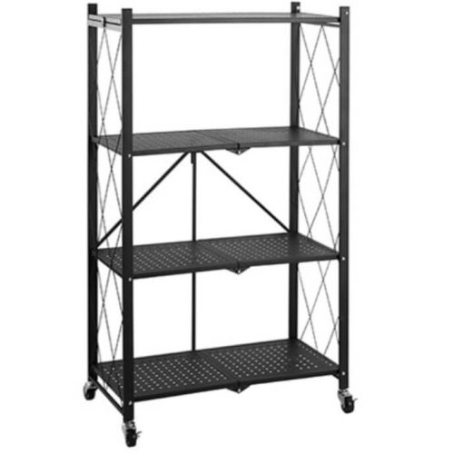 Raft RENI multifuncțional, mobil din oțel cu 4 rafturi, 71 x 34 x 126.3 cm, max.30kg/raft, negru