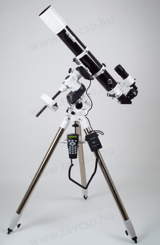 Refractor SkyWatcher Evostar-120 120/1000 pe mecanism EQ5 GoTo, lunetă căutătoare 9×50, oglindă zenitală de 2″, oculare cu bariu de 25 mm (40x) și 10 mm (100x)