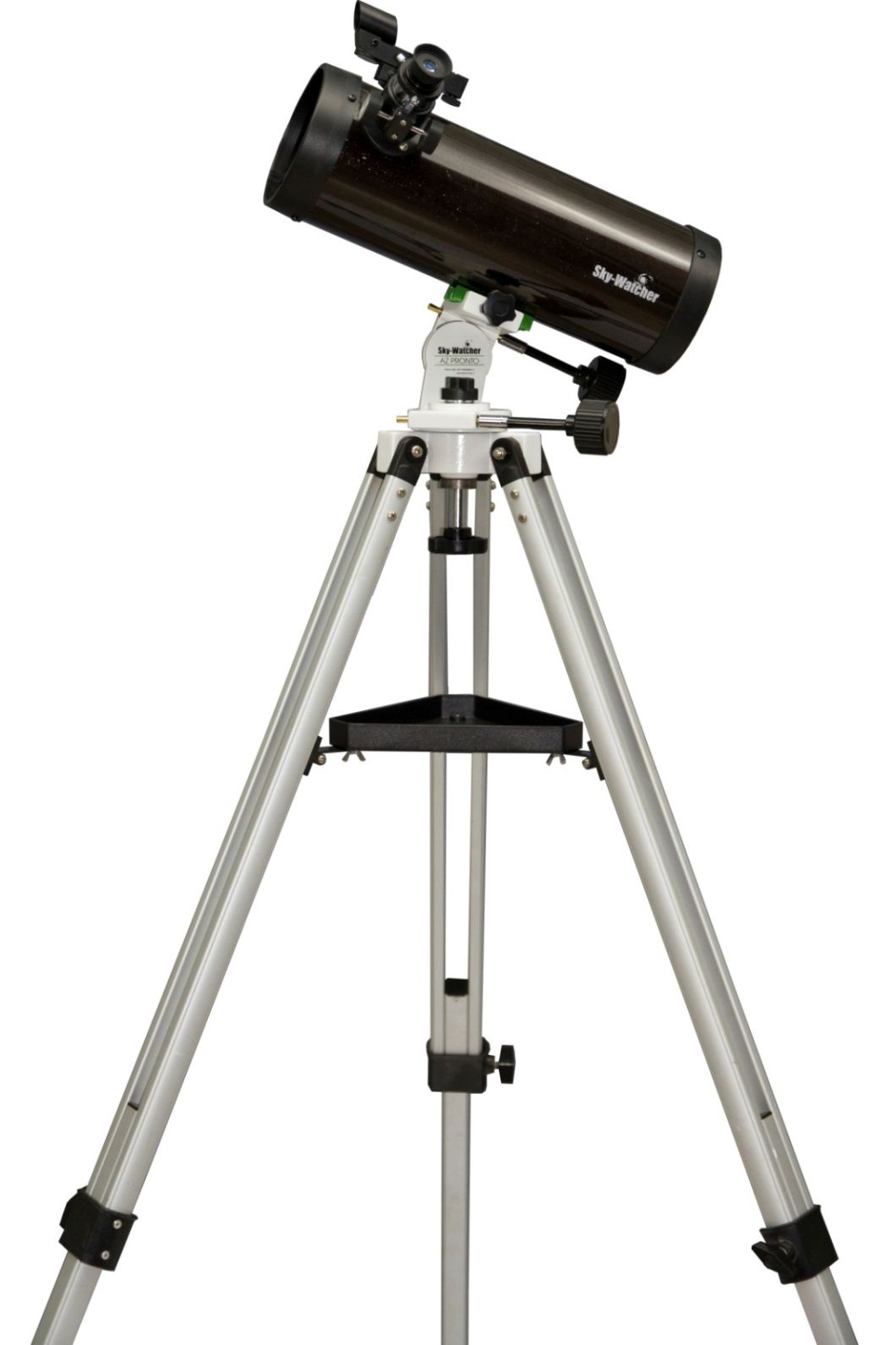 Acest telescop popular, foarte luminos, cu un diametru al oglinzii de 114 mm, este ideal pentru începători, cu un raport excelent preț/calitate. Telescopul AZ Pronto modern este ușor de utilizat pe un trepied pentru observații astronomice și chiar terestre.