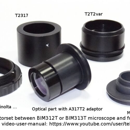 Set adaptor foto BIM312T/BIM313T pentru aparat foto DSLR Fullframe. Setul include: M24T2-rot, T2T2var, T2T210, T2317, A317T2, unitate optică și un adaptor T2/DSLR