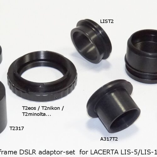 Set adaptor foto LIS-5/10 pentru aparat foto DSLR Fullframe. Setul include: LISMicHel, MicHel, T2T2n, unitate optică, T2T2pM28, T2T26 (2x) și un adaptor T2/DSLR