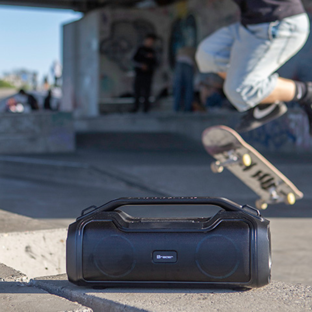 Datorită gradului de protecție IPX5, boxa Tracer BigBoy este rezistentă la apă, fiind ideală pentru utilizare pe plajă, la piscină sau pe barcă.