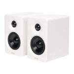 Deși boxele Edifier M60 sunt concepute în principal pentru performanță, designul lor elegant nu poate fi trecut cu vederea. Cu o carcasă minimalistă și dimensiuni compacte (doar 100 × 168 × 147 mm), boxele se potrivesc în orice spațiu, adăugând un plus de stil. Pachetul include și suporturi din aluminiu, cu un unghi de înclinare de 15 grade, care direcționează sunetul perfect la nivelul urechilor, reducând reflexiile de pe suprafața biroului.