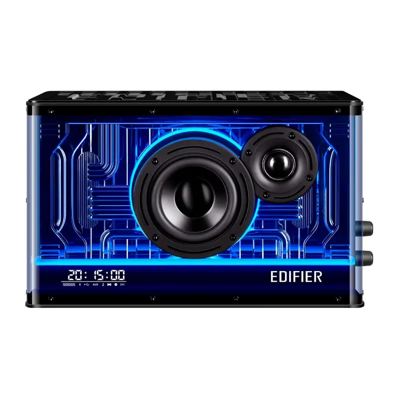 Adaugă o notă de culoare camerei tale! Iluminarea colorată și designul transparent al boxei creează un efect vizual impresionant. Personalizează culorile și efectele prin aplicațiile dedicate Edifier Connect sau Edifier ConneX.