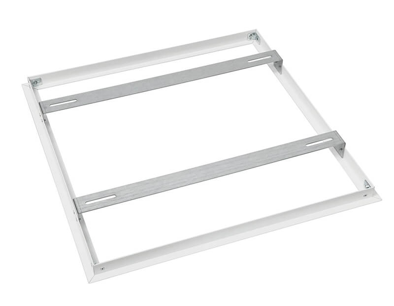 Pachetul include rama de culoare alba din aluminiu (RAL 9010) si suporturile pentru fixarea tijelor, care apartin de liftul videoproiectorului. O placa de 560 x 560 mm se potriveste in acest kit de finisare.