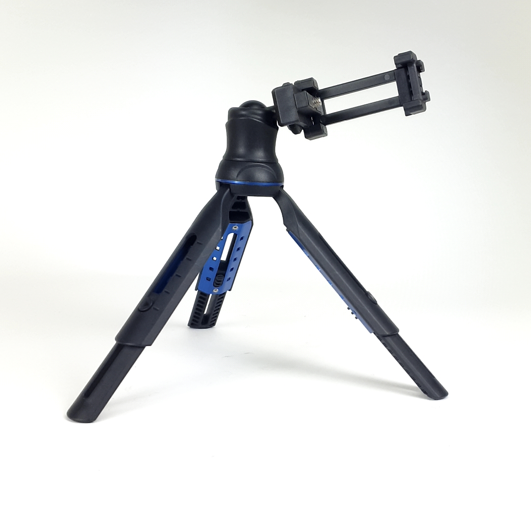 Mic, ușor, reglabil în toate direcțiile, are un filet foto standard, potrivit pentru camere mai mici