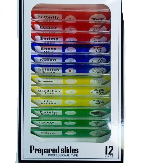 Preparate pentru microscop – Set de 12 preparate cu specimene din regnul vegetal și animal