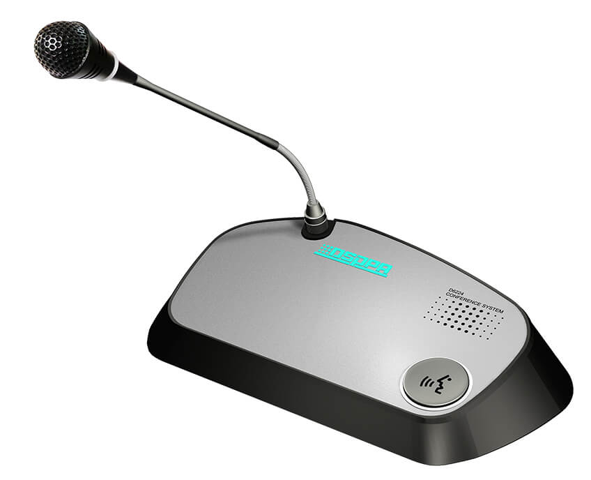 D6224 Desktop Delegate Speech Unit oferă funcții precum vorbire, check-in și autoverificare. Adoptă un microfon cu gât de gâscă, un difuzor magnetic încorporat, o mufă pentru căști și oferă, de asemenea, indicatoare luminoase de pornire și indicatoare de buton și lumină. În modul VOICE, poate realiza funcția de pornire/oprire a controlerului vocal. Dispune de procesoare digitale de mare viteză și circuite audio HiFi și poate indica starea de lucru a ecranului LCD.