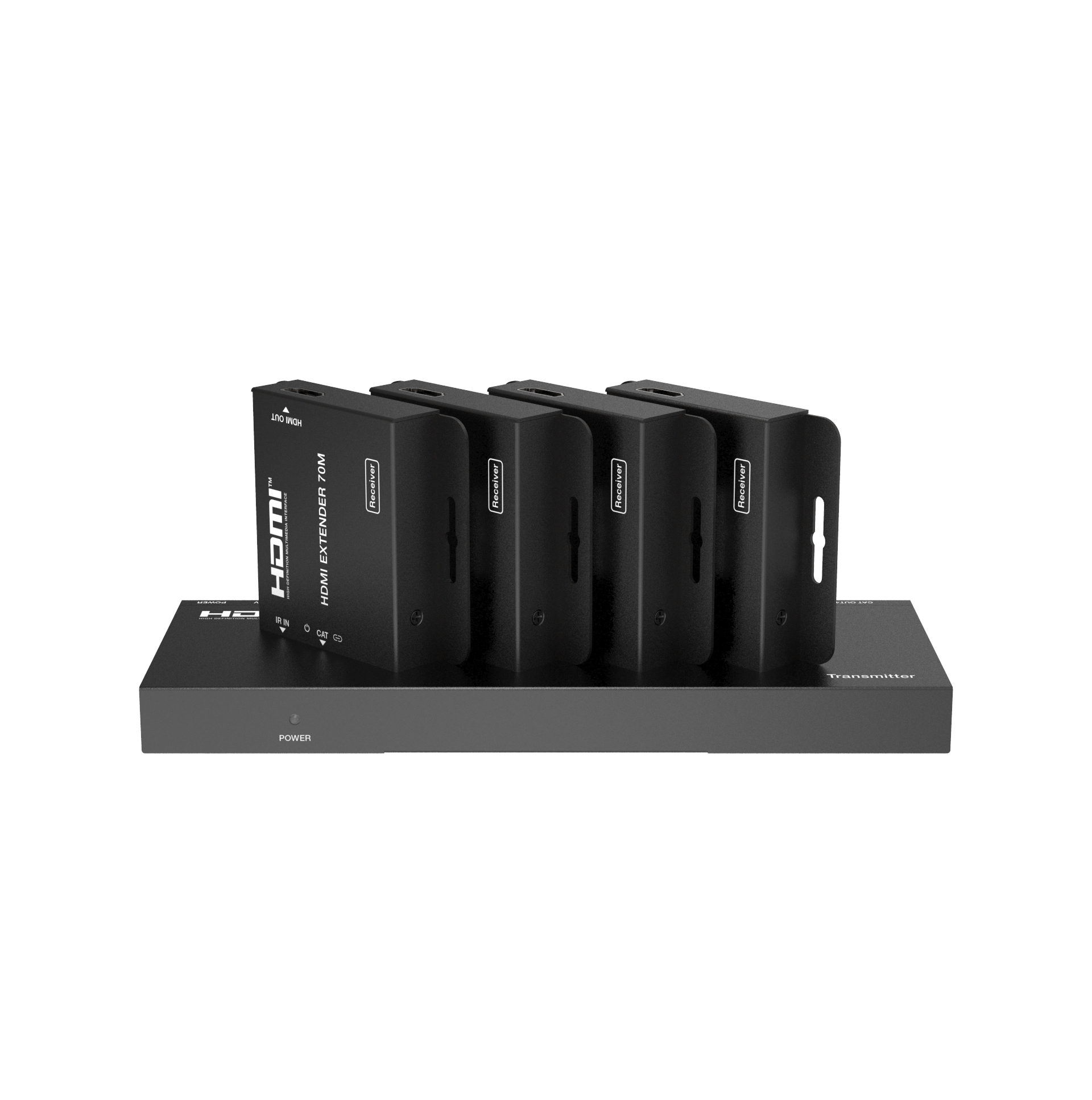 Este proiectat cu1 intrare HDMI, 1 ieșire buclă HDMI și 4 ieșiri CAT.