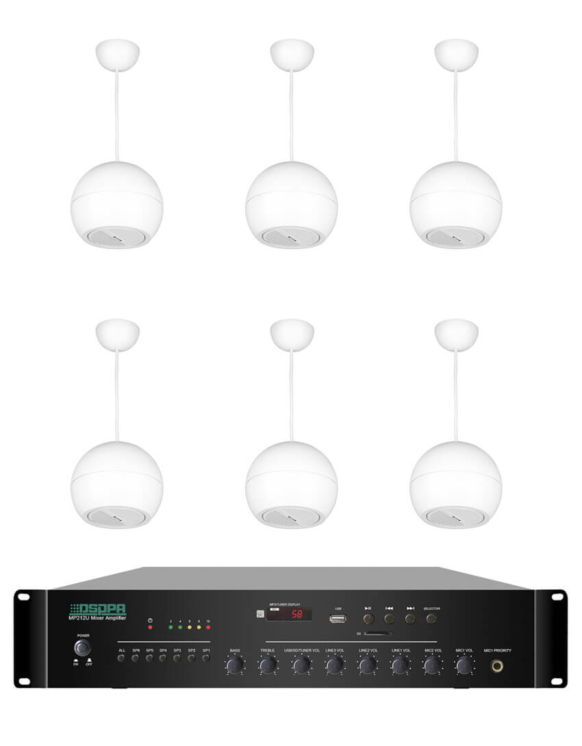 Amplificator 120W cu mixer, 6 zone, DSPPA MP212U cu USB/ SD/ FM Tuner