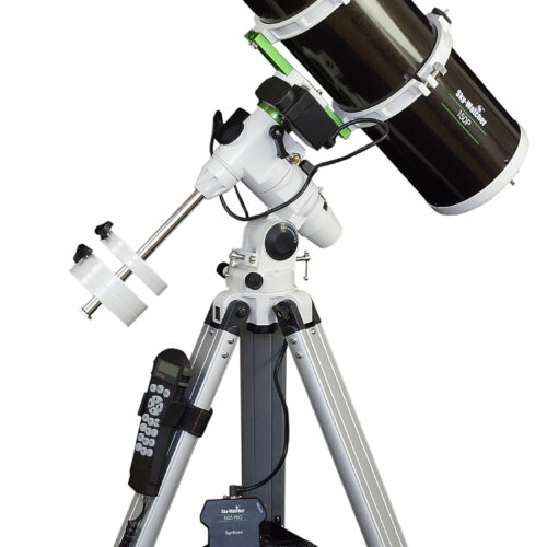 Telescop Newtonian SkyWatcher Explorer-150PDS 150/750 cu focalizator Crayford cu două viteze (1:10) pe mecanism goto Newtonian EQ3. Echipament: lunetă căutătoare 6×30, pereche de inele tubulare, ocular APEX de 28 mm