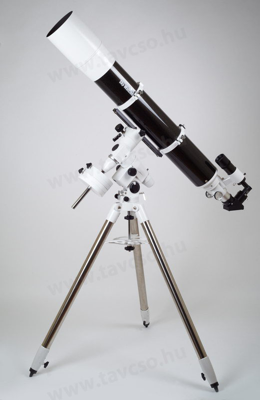 Refractor SkyWatcher Evostar-120 120/1000 pe mecanism EQ5 cu picior de oțel, lunetă căutătoare 9×50, oglindă zenitală de 2″, oculare cu bariu de 25 mm (40x) și 10 mm (100x)