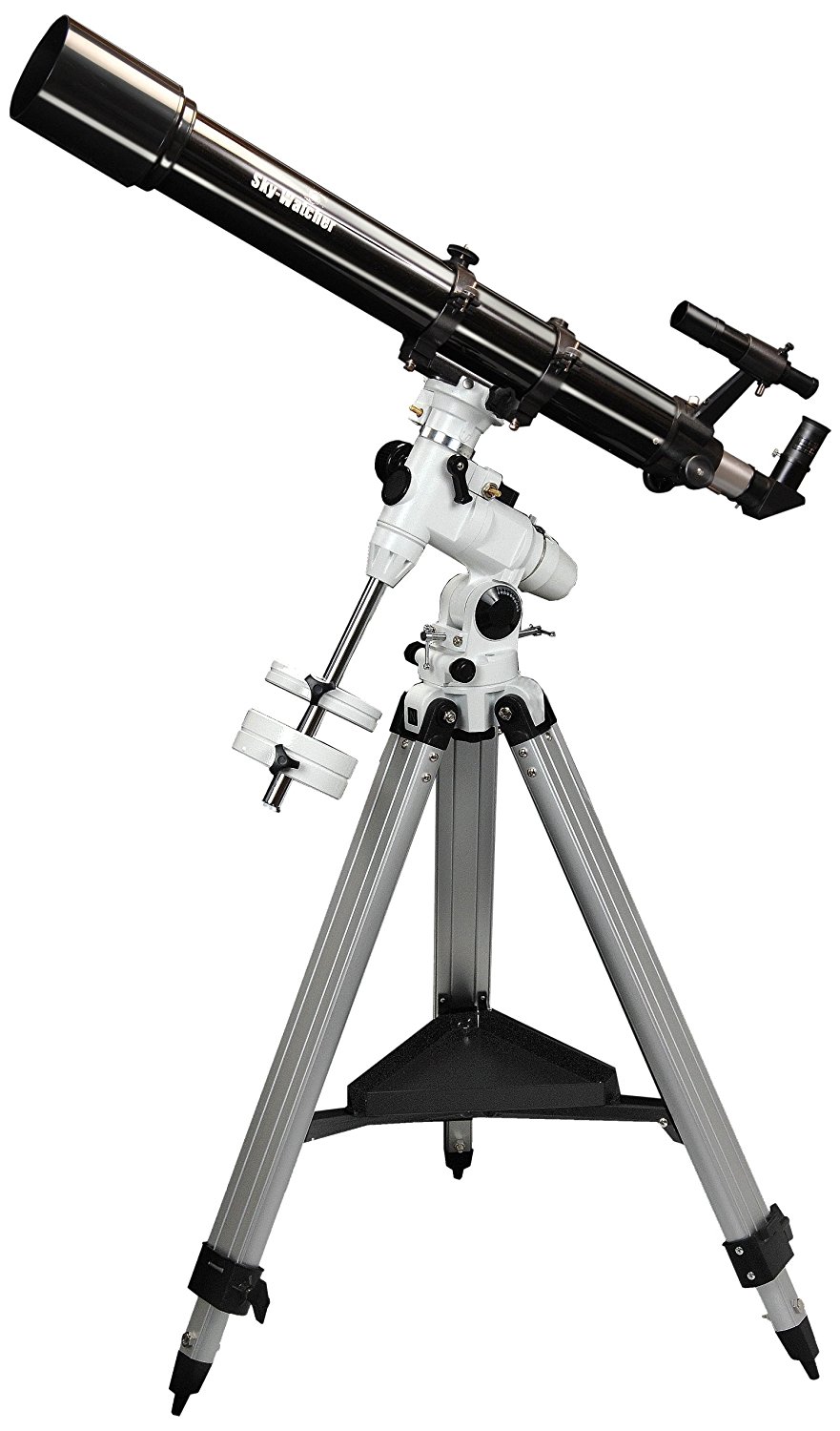 Refractor SkyWatcher Evostar-90 90/900 pe mecanism EQ3, căutător 6×30, oculare cu bariu de 10 mm (90x) și 25 mm (36x), oglindă zenitală