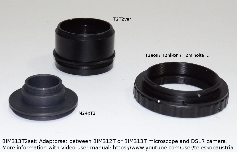 Set adaptor foto BIM312T/BIM313T De la tub foto la aparat foto DSLR. Setul include: M24T2-rot, T2T2var și un adaptor T2/DSLR