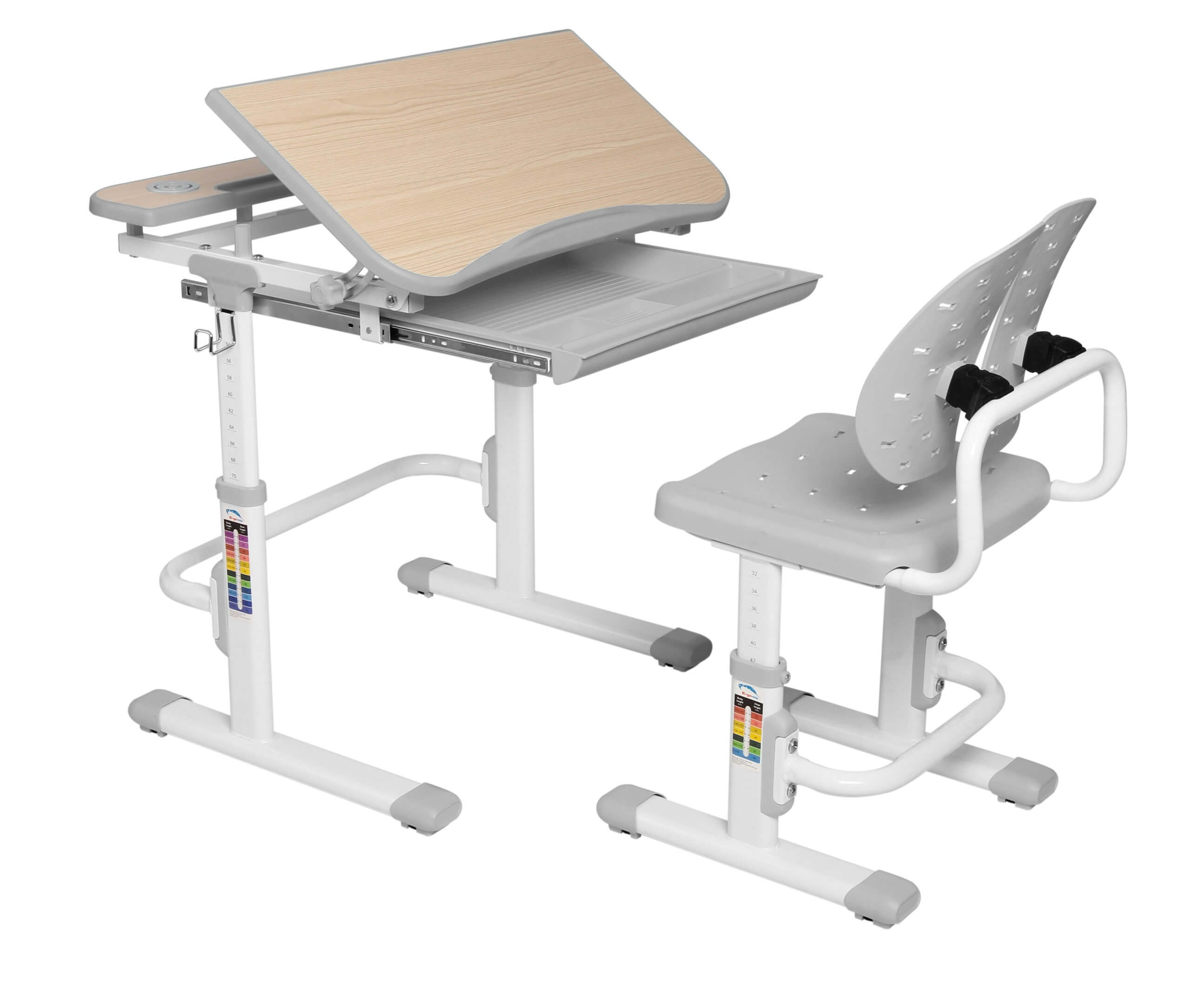 Biroul are un penar încorporat și un sertar de depozitare care ajută la organizarea cărților și a papetăriei reducând astfel dezordinea. Biroul ergonomic REIA poate fi înclinat într-un unghi optim de până la 45° pentru a proteja coloana vertebrală, umărul, gâtul și vederea copilului în timp ce învață, citește sau desenează.