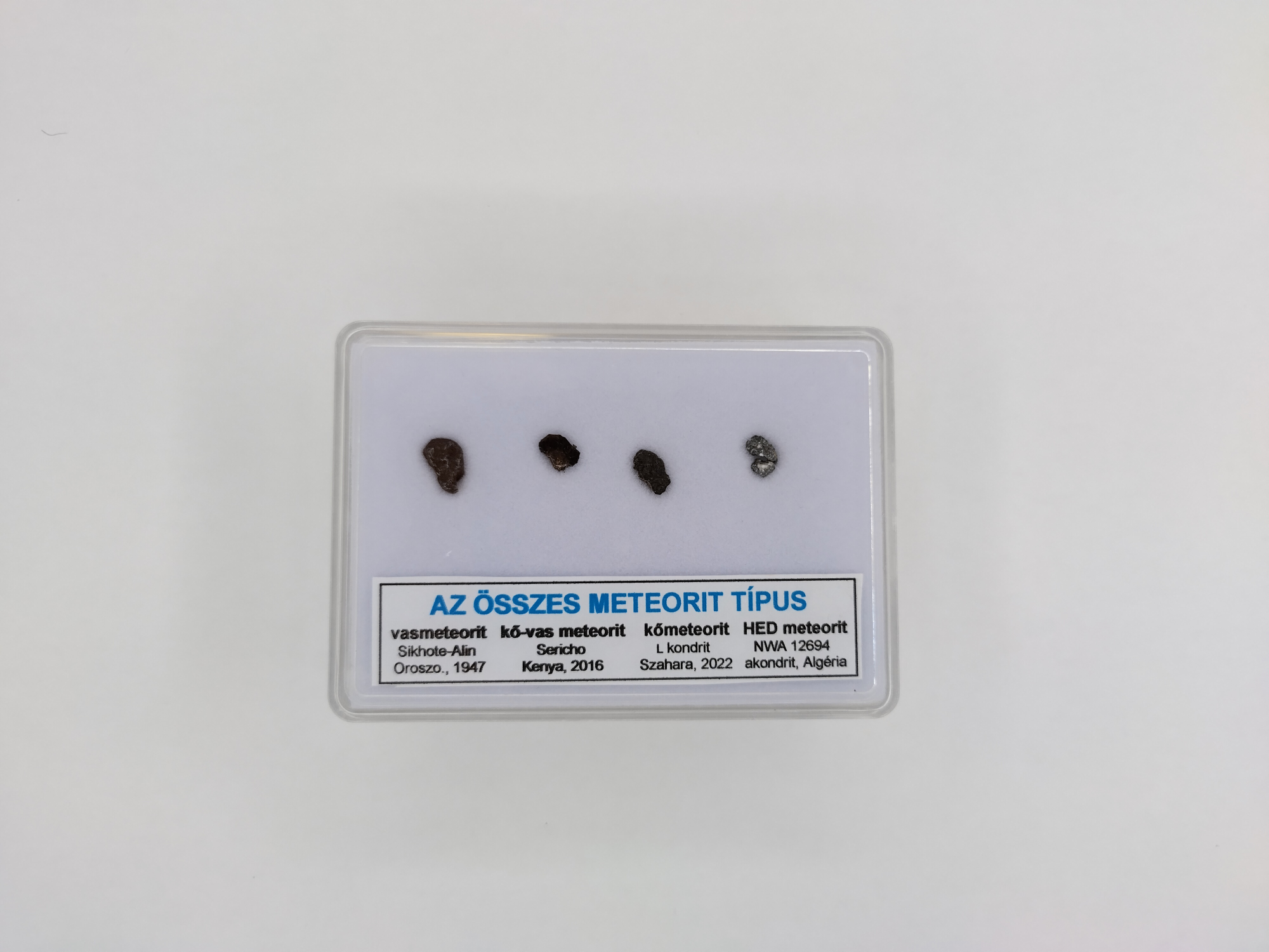 Set de meteoriți pentru colecționari. Meteoriți de fier și mai multe tipuri de meteoriți pietroși. Cutie de colecționar în ediție limitată. Dimensiuni și prețuri personalizate, numărul de meteoriți poate varia, imaginea este doar cu titlu ilustrativ