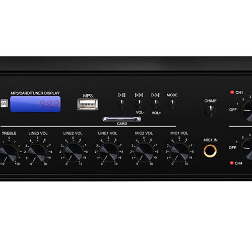Amplificator 120W cu mixer DSPPA MP310U, 6 zone, USB/SD/Tuner/Bluetooth, 4Mic si 3AUX, 100V & 4-16 Ohmi