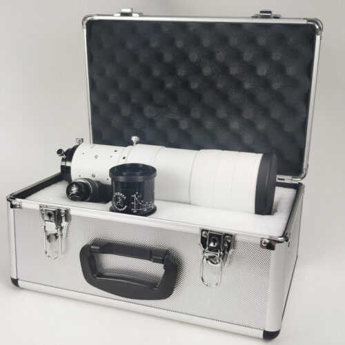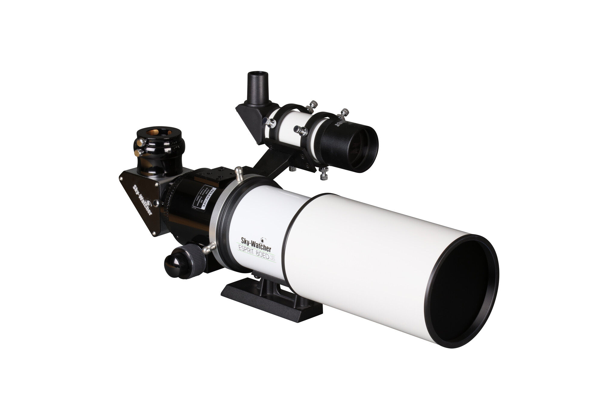 SkyWatcher ESPRIT APO 80/400 cu extensie de 2,7″, corector de plan de imagine full-frame, ocular Apex de 28 mm, căutător 9×50, oglindă zenitală dielectrică de 2″.