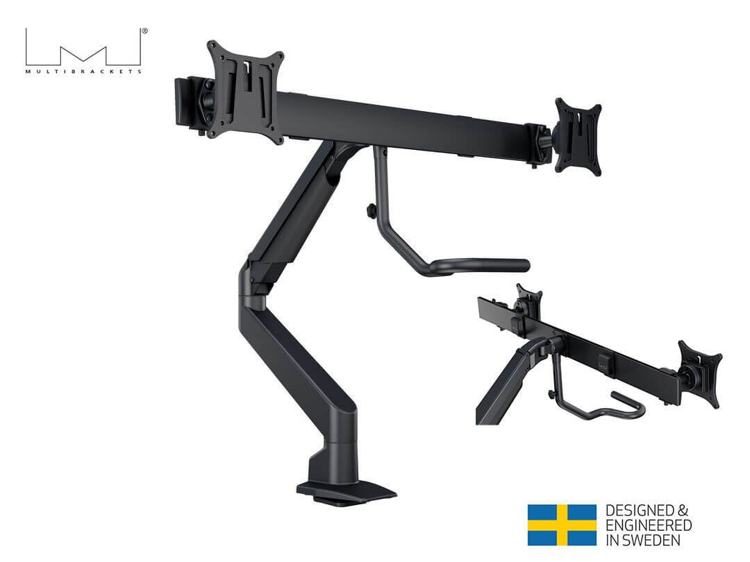 Un braț de monitor suspendat cu gaz cu articulație triplă, proiectat de Multibrackets pentru a optimiza productivitatea și a ajuta la reducerea tensiunii la nivelul gâtului, spatelui și ochilor.