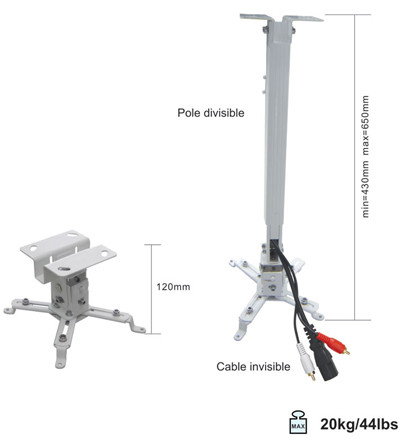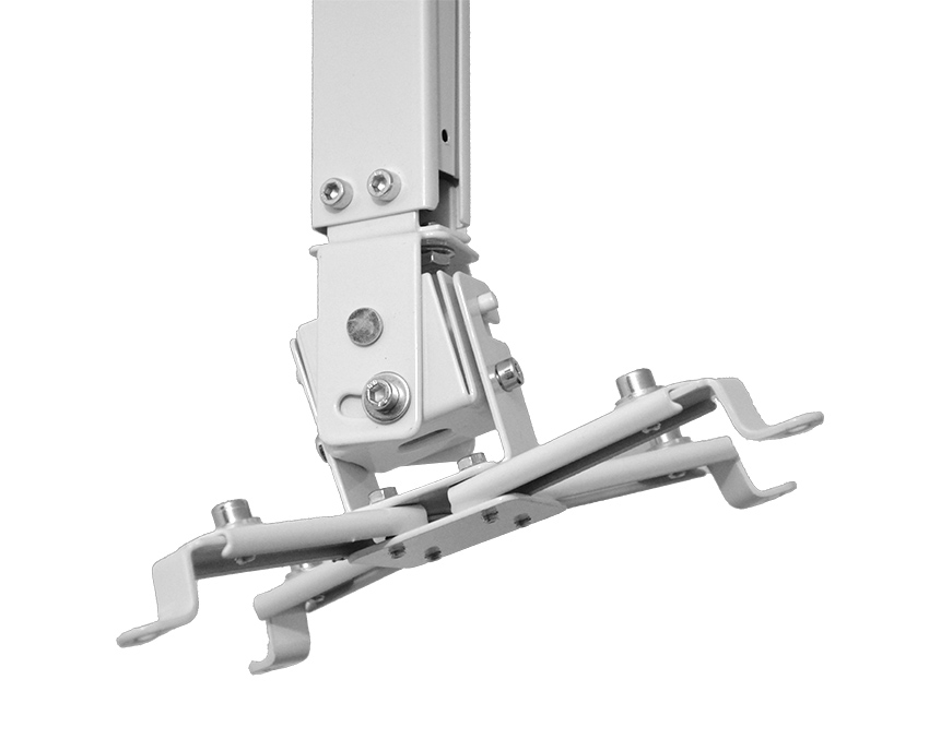 Suportul pentru videoproiector este realizat din metal de culoare alba, avand la prinderea videoproiectorului un cap foarte flexibil ce perminte miscarea videoproiectorului pe laterala si verticala cu pana la plus – minus 15 grade.