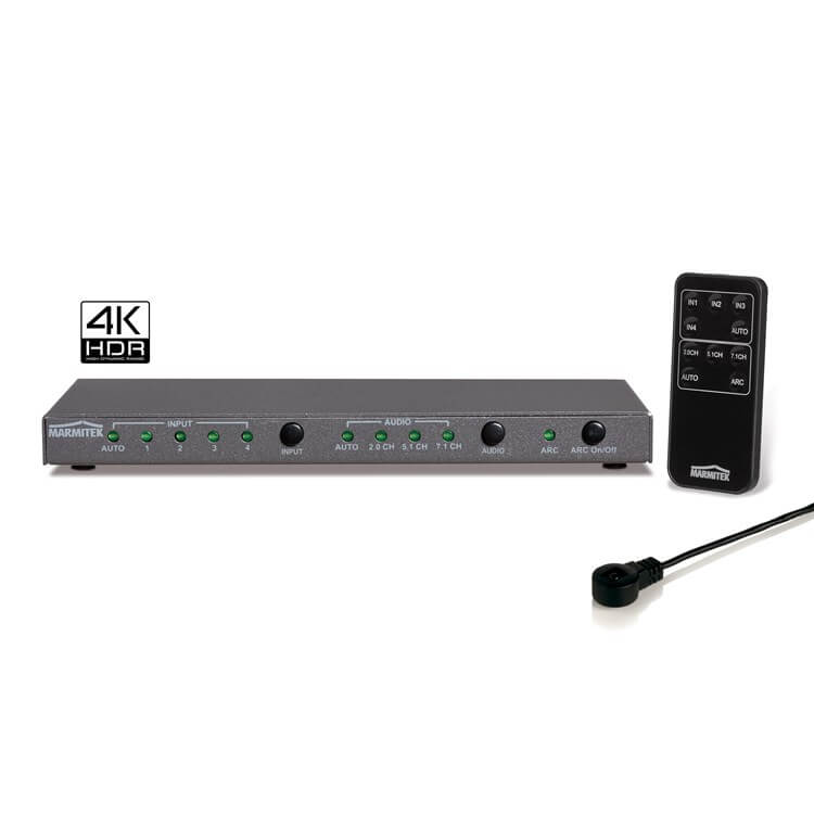 Connect 621 UHD 2.0 vă permite să conectați până la 4 dispozitive la televizor cu un singur cablu. Acest comutator HDMI are o ieșire audio digitală suplimentară care vă permite să vă conectați și receptorul AV folosind un singur cablu, cu opțiunea de a selecta formatul audio dorit (2.0/5.1/7.1). Receptorul infraroșu separat inclus vă permite să operați comutatorul atunci când este poziționat în afara vederii.